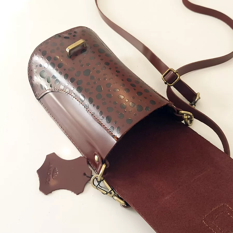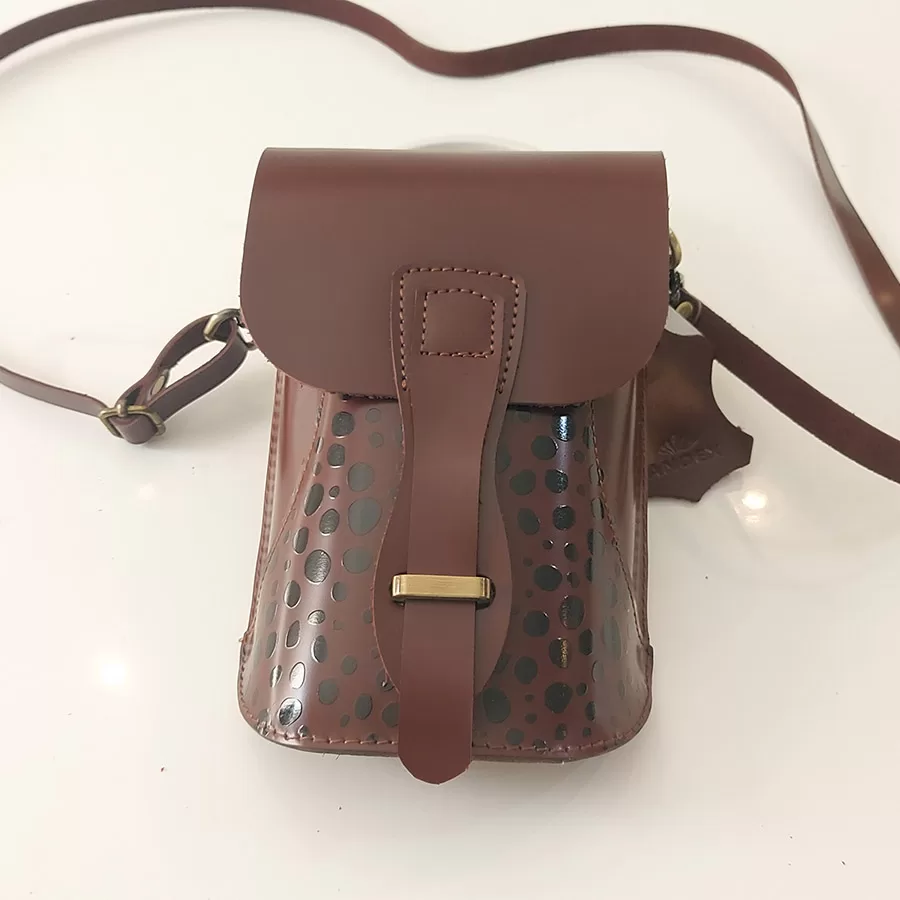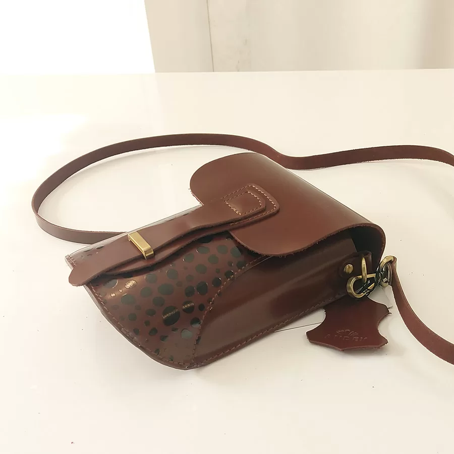 Dámská kožená crossbody kabelka Andex s potiskem – hnědá