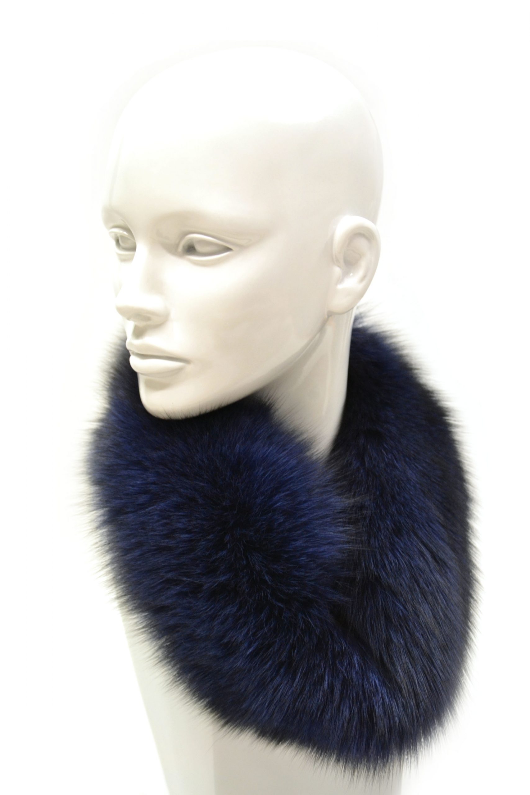 Dámská kožešinová multifunkční čelenka/ límec z polární lišky obarvená do tmavě modré barvy.