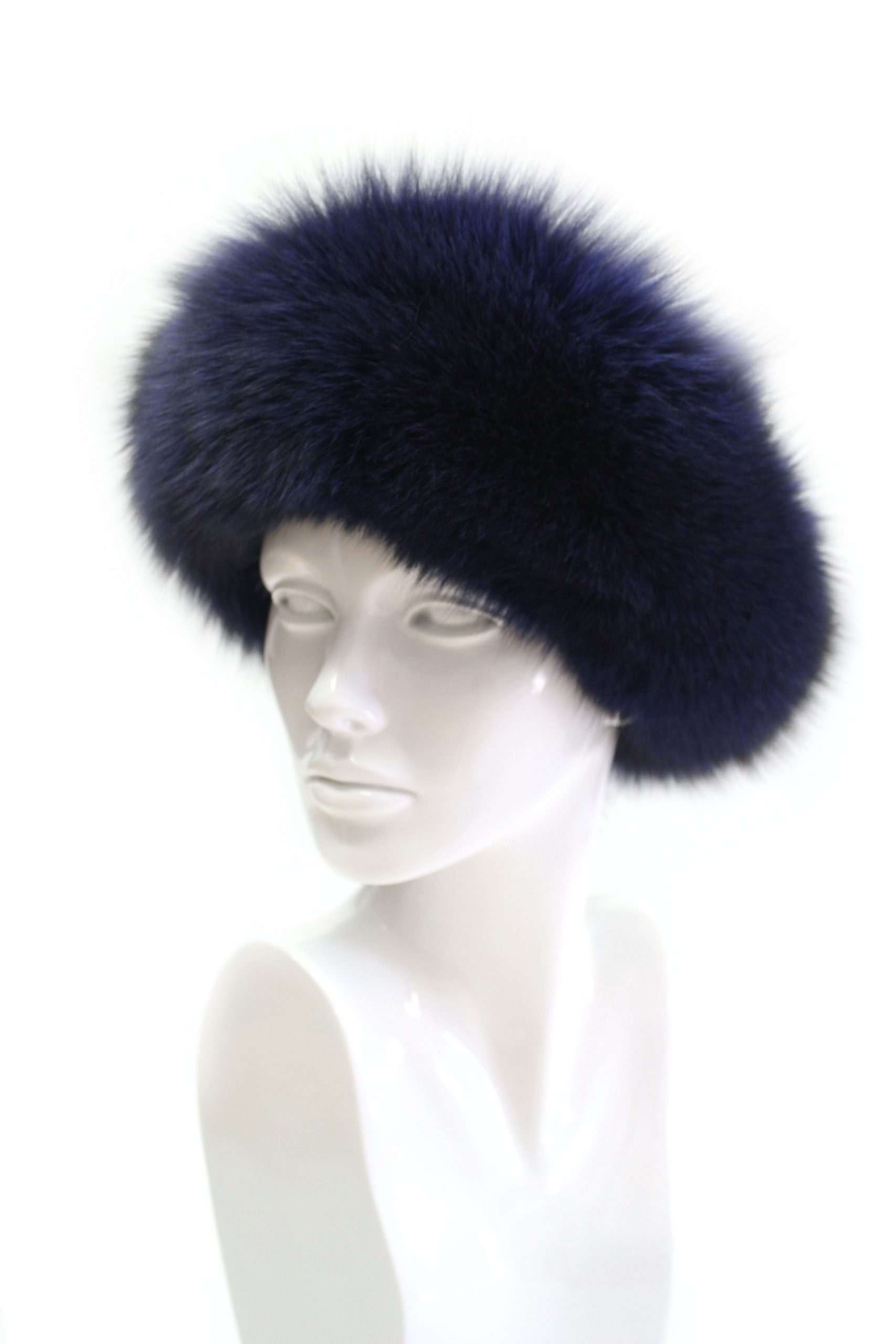 Dámská kožešinová multifunkční čelenka/ límecčelenka z polární lišky obarvená do tmavě modré barvy.