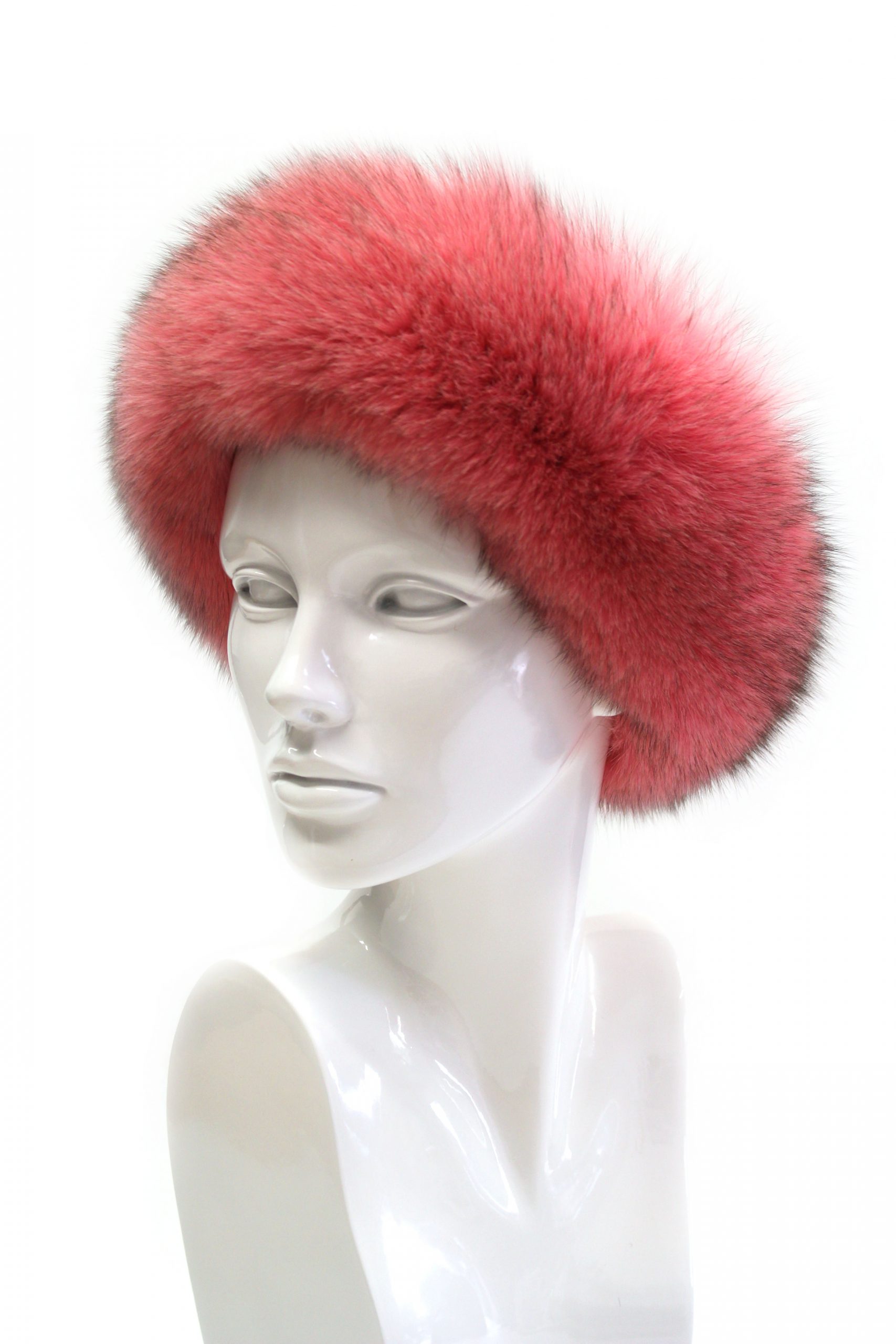 Dámská kožešinová multifunkční čelenka/ límec z polární lišky obarvená do růžové barvy.