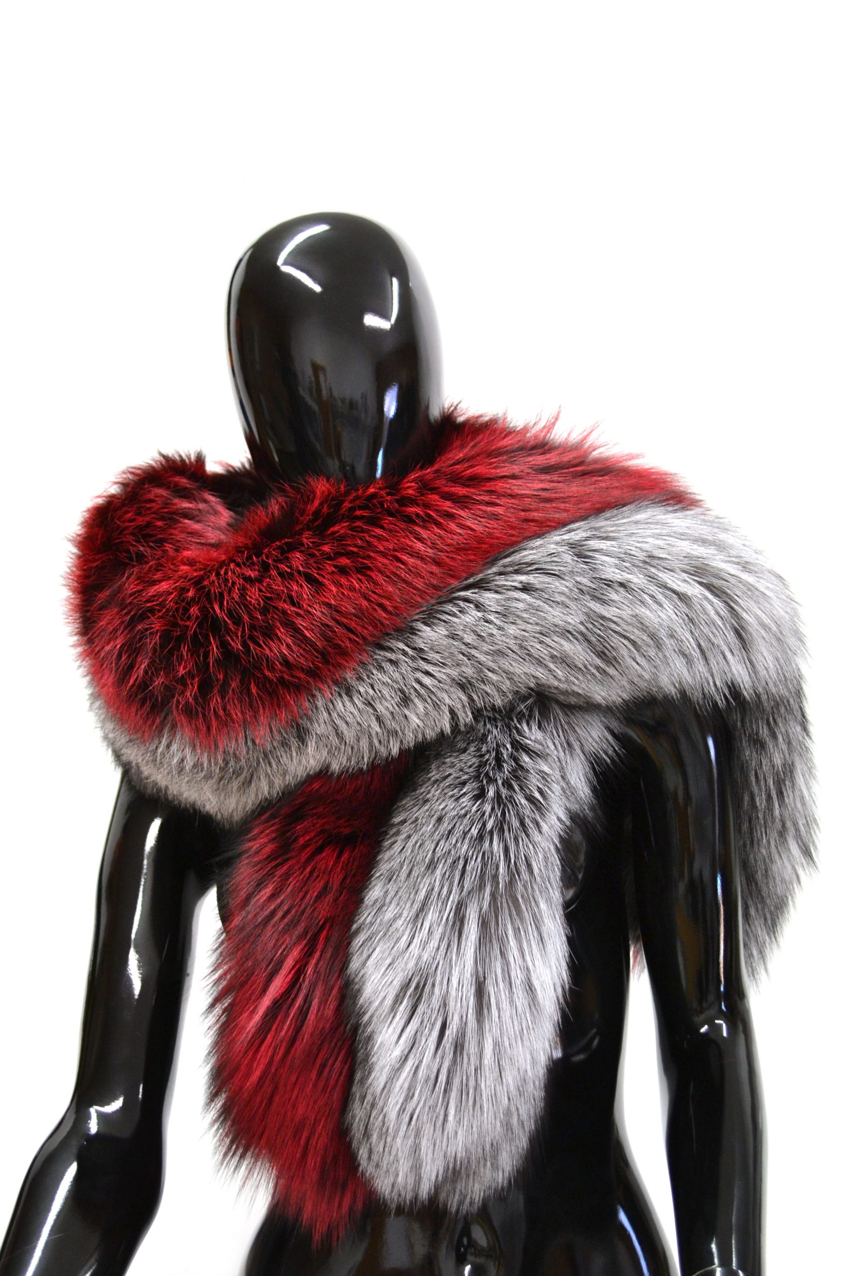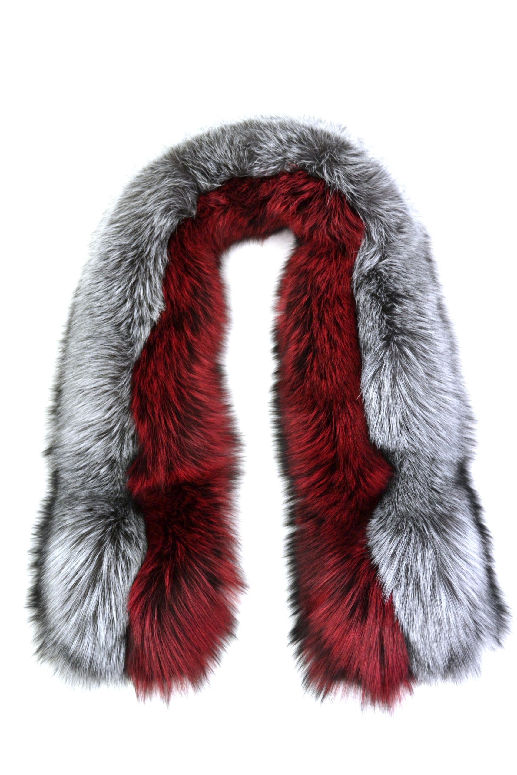 Dámská kožešinová šála z kombinované stříbrné lišky v přírodní barvě a stříbrné lišky obarvené do červené barvy.