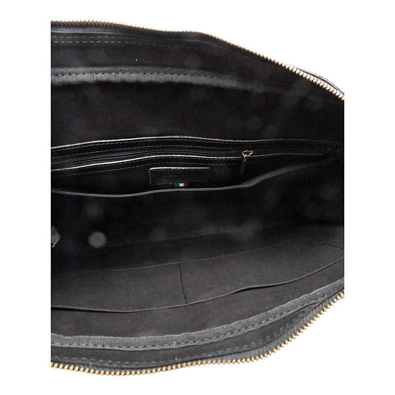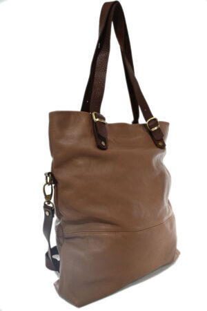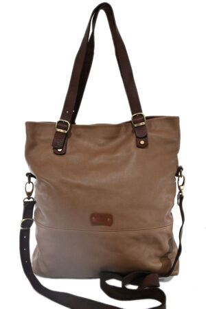 Taška je zhotovená z pevné hovězí kůže, je uzavíratelná zipem, uvnitř je jedna separace, do které se vejde  notebook. 2 otevřené přihrádky na mobil, jedna otevřená přihrádka a jedna zipová kapsa.  Použité kování je v barvě mosazi.  Součástí tašky je odepínatelní pevný textilní popruh přes rameno.