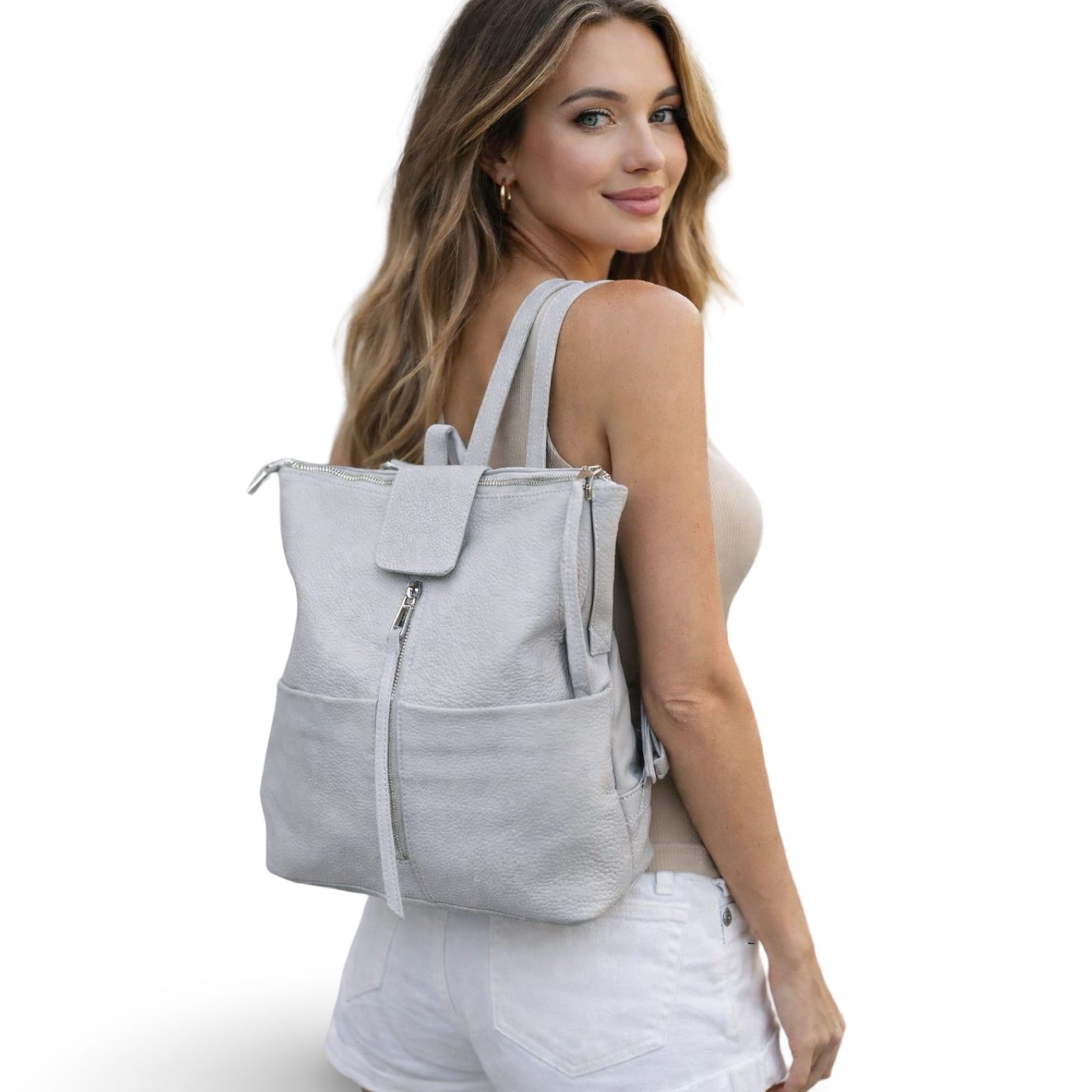 Kožený batoh se zipem Andex – ŠEDÁ