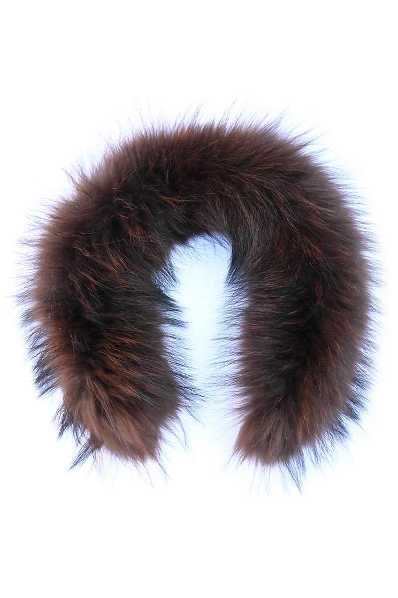 Luxusní kožešinový lem z finského mývala obarvený do hnědé barvy.