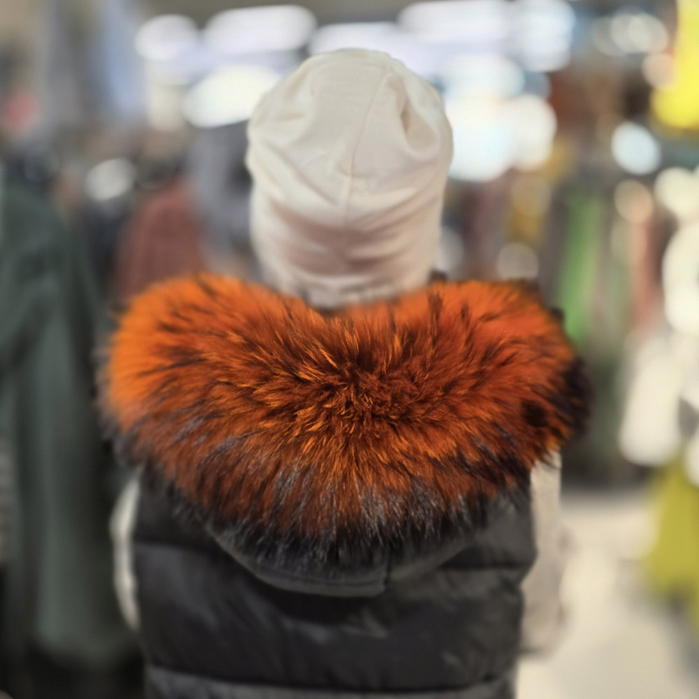 Kožešinový lem je určený k ozdobení kapuce, nebo se nosí jako šálový límec.