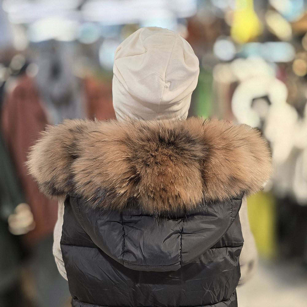 Kožešinový lem je určený k ozdobení kapuce, nebo se nosí jako šálový límec.