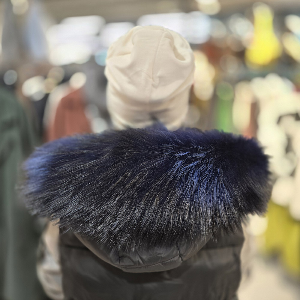 Luxusní kožešinový lem ze stříbrné lišky obarvená do modré barvy.