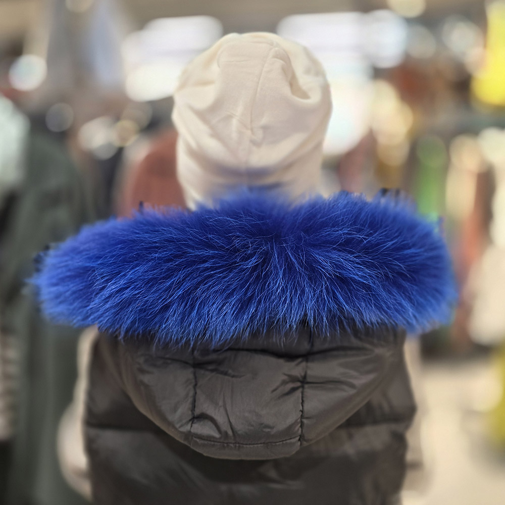 Luxusní kožešinový lem z polární lišky obarvená do modré barvy.