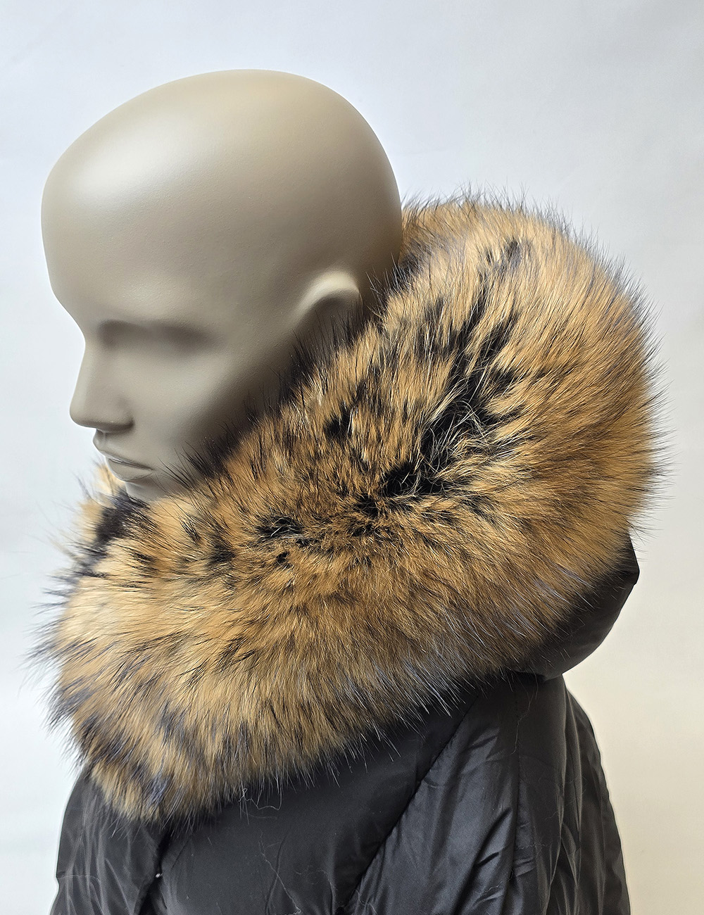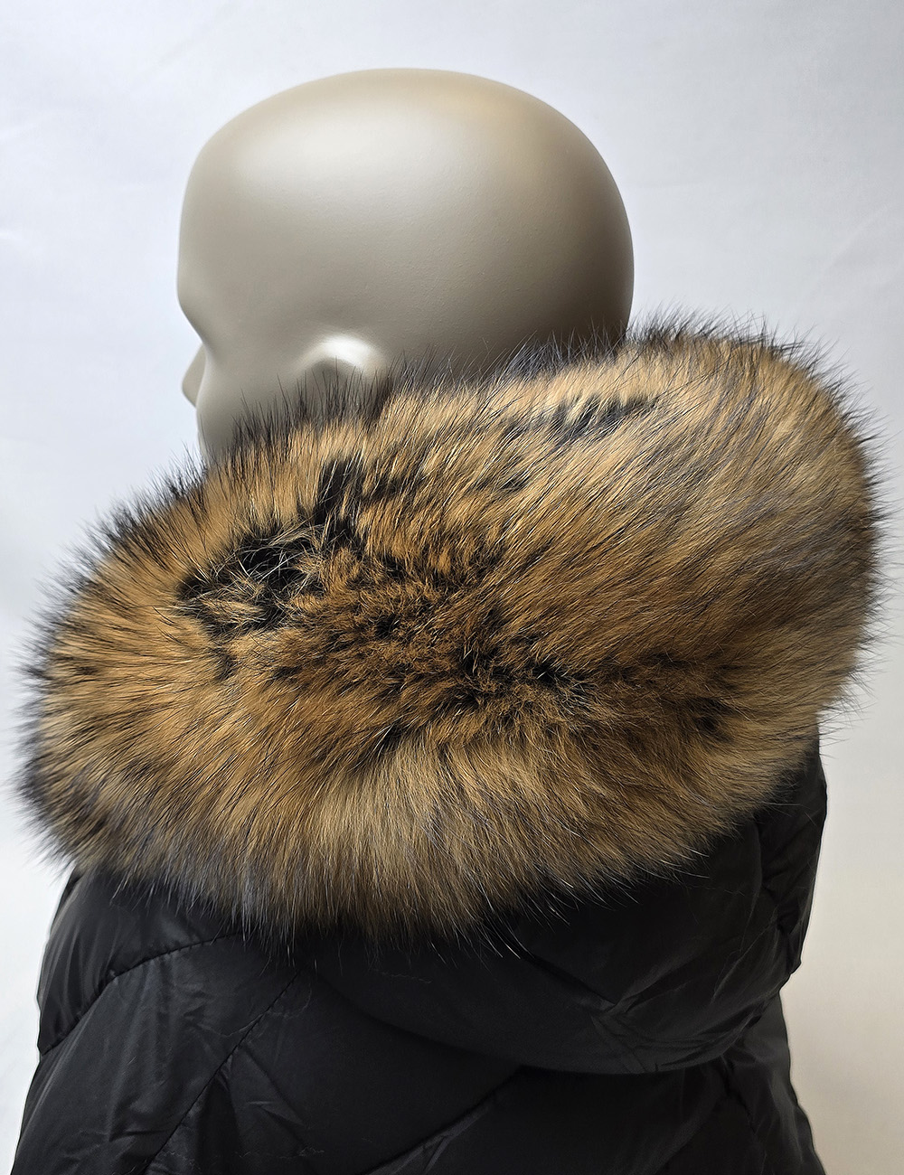 Luxusní kožešinový lem z finského mývala obarvený do tmavě hnědé barvy.